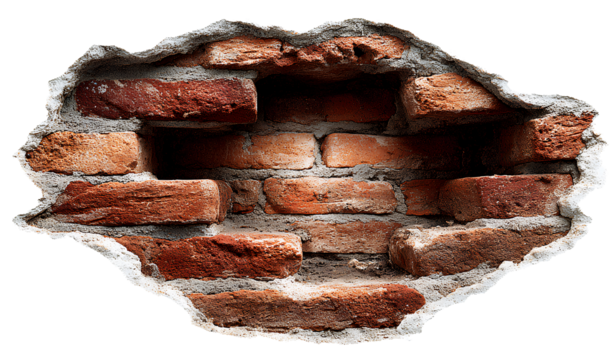 a brick wall with a hole, transparent background