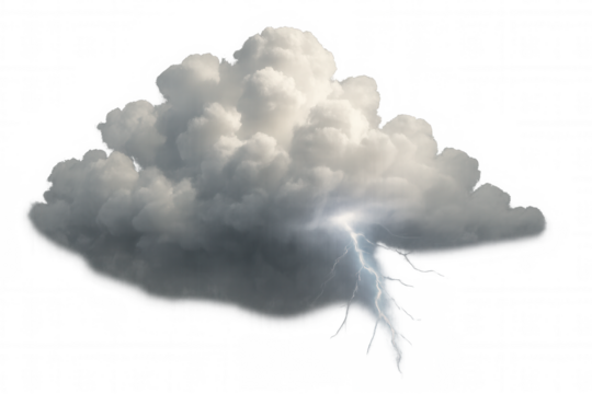 Storm cloud with bright lightning flash on transparent background creating dramatic weather concept