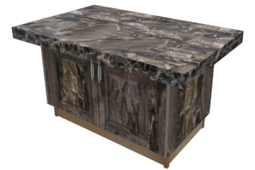 Modern kitchen island with natural wood texture on a dark background for a stylish interior