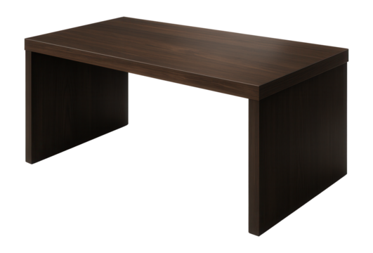 Modern rectangular dark wood table with a sleek and minimalist design on transparent background.