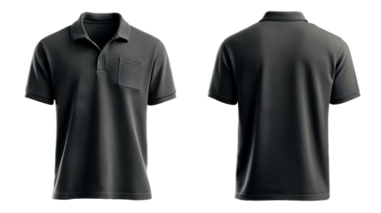 Blank dark gray male polo t-shirt, template for your design mockup. Front and back view.