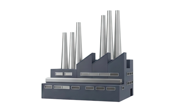 Dark Grey Factory Building with Multiple Chimneys