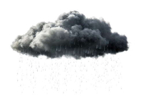 Storm cloud bringing heavy rain and downpour showing bad weather and climate change concept on transparent background