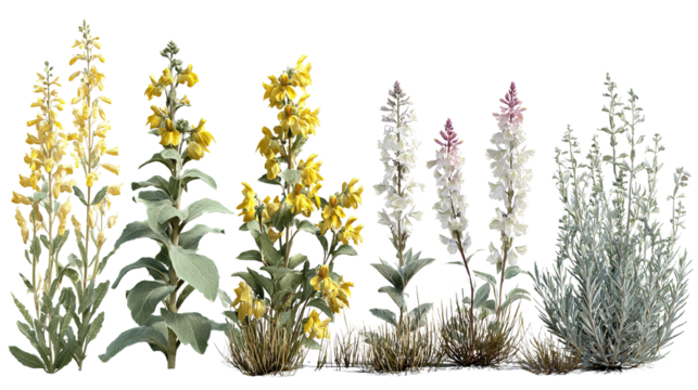 Diverse wildflowers isolated against a dark background create a captivating scene