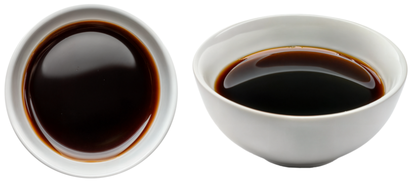 White bowl with soy sauce dip, side and top view, food bundle, isolated on a transparent background