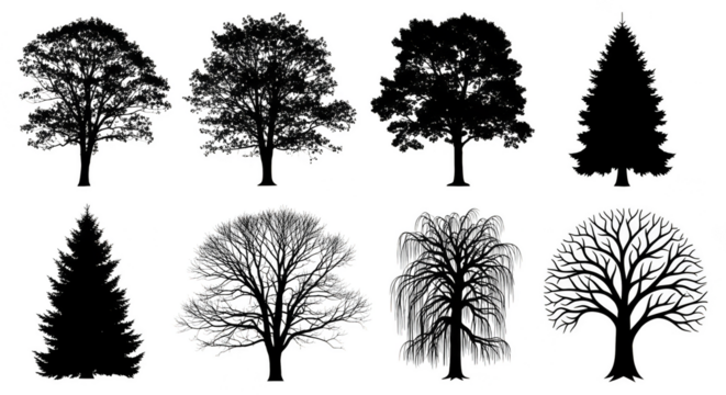 Chromatic tree silhouettes shining in darkness