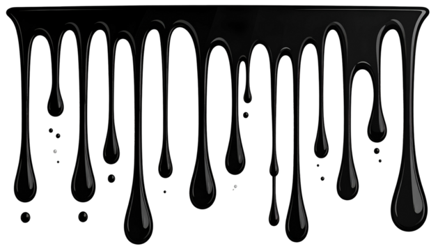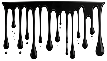 Glossy, black drips cascade downward from a dark, unseen surface, creating a visual texture