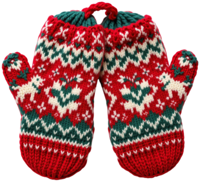 A christmas mitten pair with festive patterns cozy atmosphere apparel indoor close-up holiday spirit