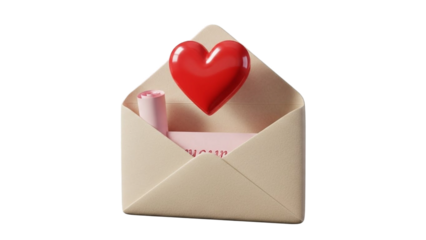 Envelope with love letter and heart isolated on transparent background