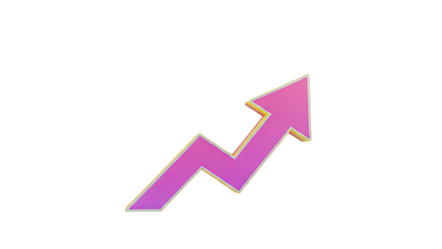 3D Pink Arrow Charting Upward Trend on transparent background