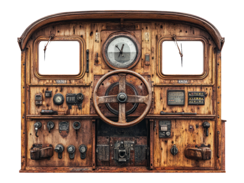 Classic Train Steering Wheel with Wooden and Iron Elements