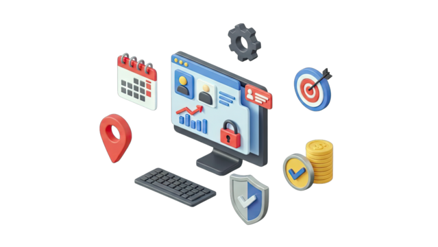 3d illustration of a business dashboard featuring bar chart, line graph, and donut chart for data analysis and reporting isolated on transparent background