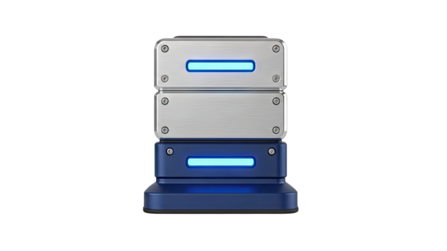 Stacked Futuristic Server Units with Blue LED Illumination