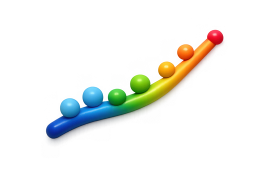 Colorful regression curve with rainbow gradient spheres for data analysis and presentation design