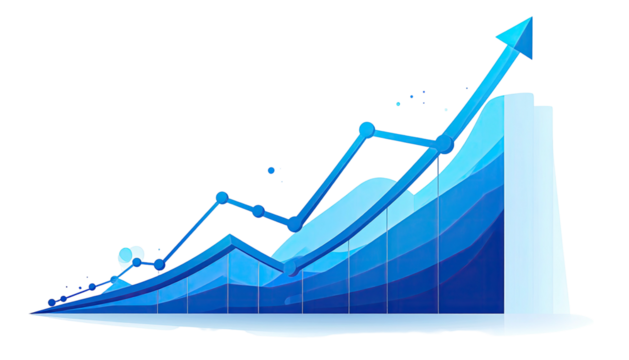 Graph illustrating business performance and financial results, showing increasing data and economic development. Transparent background