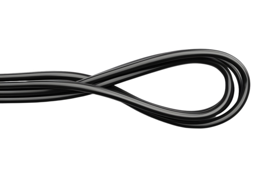 Ai generated image of vibrant green abstract light streak curving in a smooth loop, isolated on transparent background