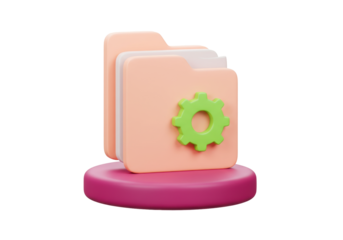 A 3D rendered graphic of a yellow and black digital folder icon with blank white paper sheets visible inside Document File Storage Data Organization Computer Interface Web