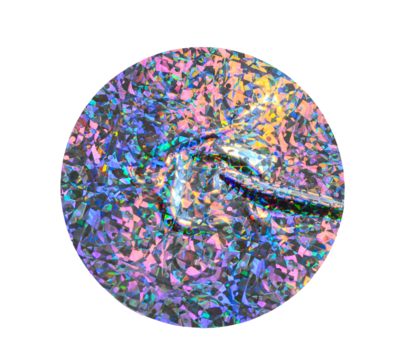 Iridescent Round holographic texture duct sticker with blue shimmer effect and abstract reflection, light background security