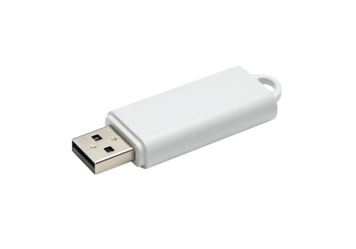 A white fabric-braided USB Type-C cable isolated on a transparent PNG. Ideal for concepts related to business technology, data transfer, connectivity and fast charging for modern devices.