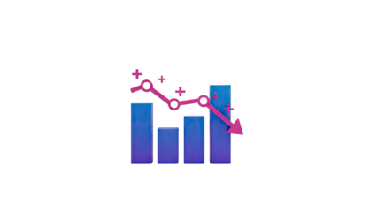 3D Falling down arrow over colorful bar chart graphic on transparent background