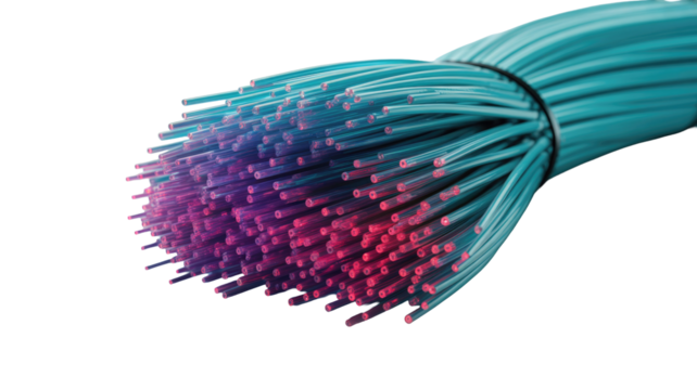 Glowing abstract fiber optic streams on transparent background