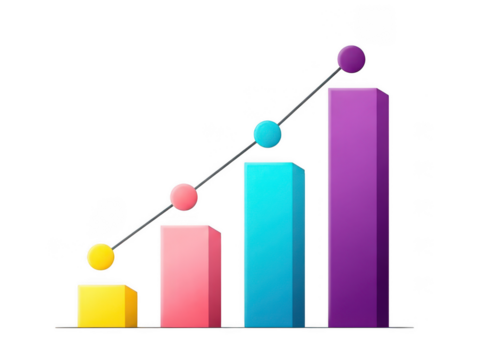 3D Bar Chart with Upward Trending Arrow on transparent background