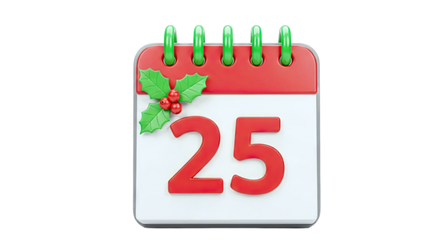 December 25 in a notebook calendar in a transparent background in PNG