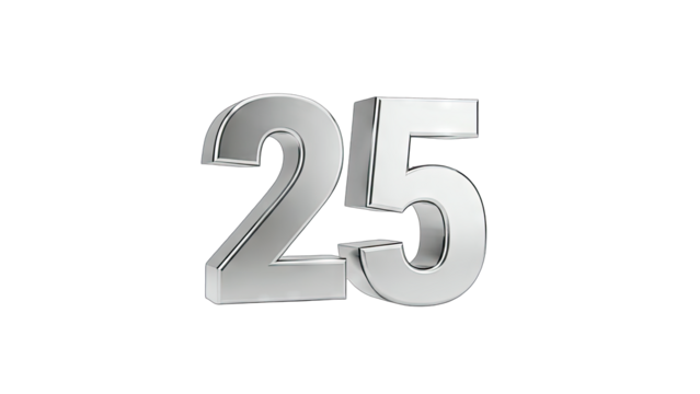 Shiny Silver Number 25 Isolated on White Background