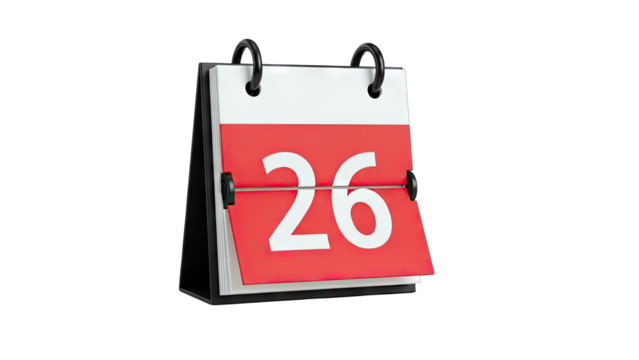 January 2026 calendar. Page of annual business desk winter month flip calendars isolated on transparent