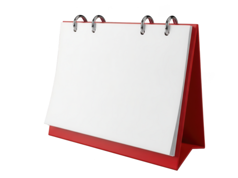 Blank red desk calendar isolated on transparent background