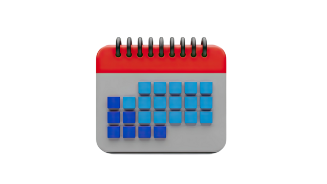 3D Calendar Icon with Blue Dates on transparent background