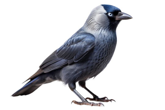 Western jackdaw, corvus monedula, standing, isolated on transparent background
