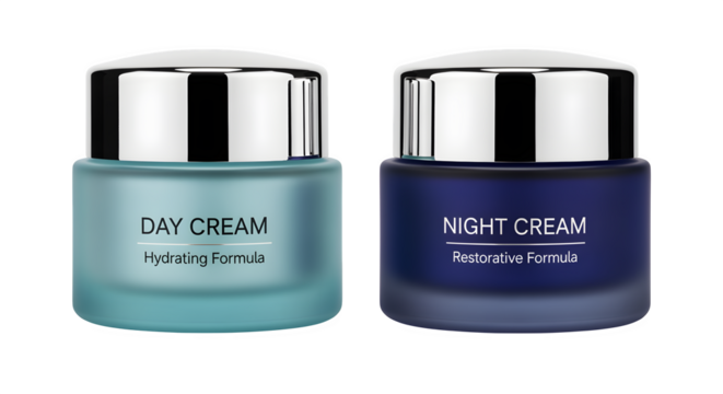 Duo set of day and night cream jars, isolated on white background