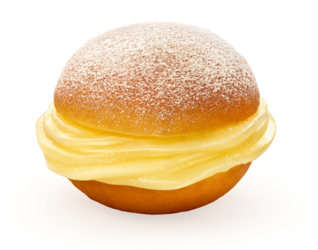 sonho doce recheado de creme de baunilha isolado em  fundo transparente - pão doce recheado com creme de baunilha