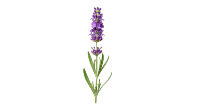 Lavender flower stands tall with purple blooms and green leaves in a simple setting during daylight