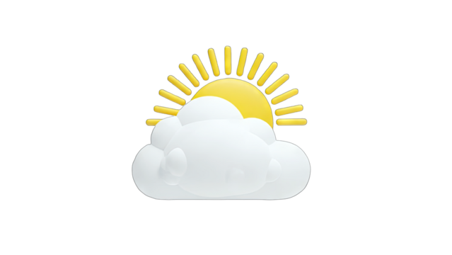 Cheerful sun and cloud characters with rosy cheeks on transparent background