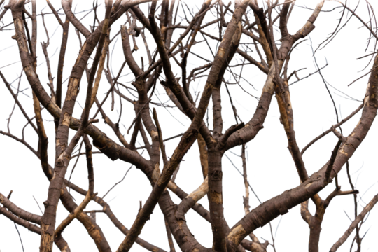 Leafless tree branches extending against transparent background