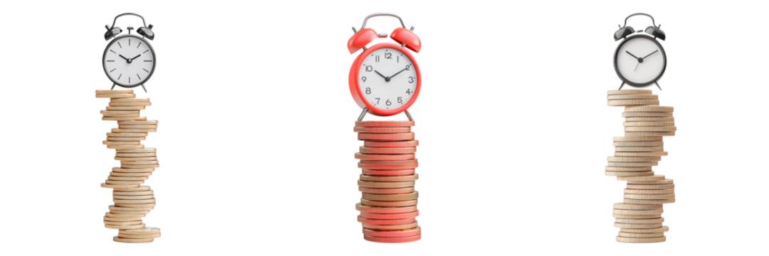 The Race Against Time Stacked Clocks and Coins Symbolizing Wealth and Opportunity