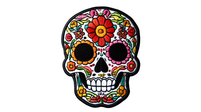Vibrant Calavera Artwork: Decorative Skull with Flowers and Patterns.