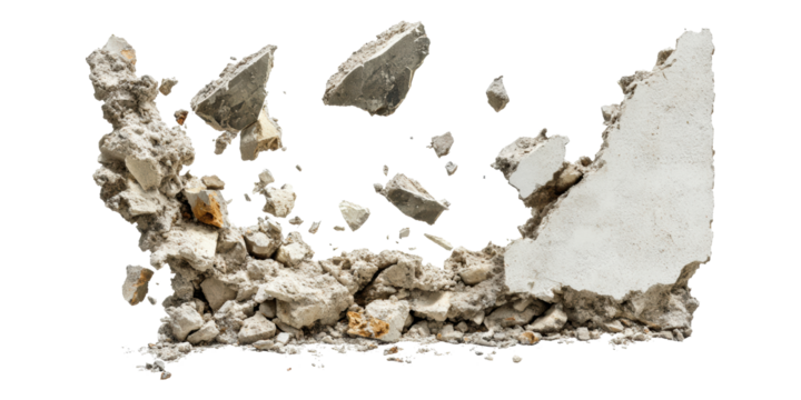 Heap of broken concrete debris with exposed rebar debris pile construction rubble isolate
