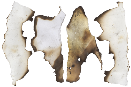 Burnt paper edge texture – charred torn sheet, isolated transparent background