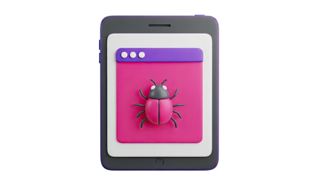 3D Bug Icon on Smartphone Screen - Software Error Concept