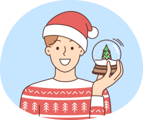 Smiling santa claus holding a wrapped christmas gift transparent background