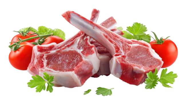 Raw meat tomatoes parsley ready for cooking ingredients combine for meal preparation