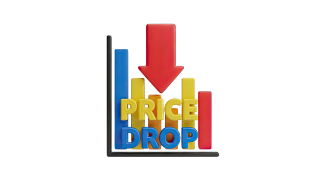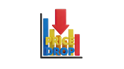 3D Bar Chart Showing Financial Decline with Dollar Coin on transparent background
