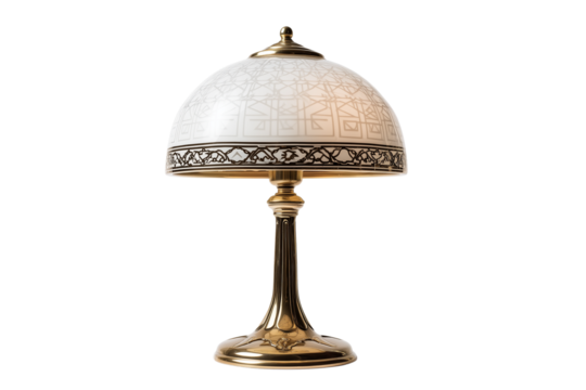 Golden art deco table lamp illuminating interior spaces, providing elegant home decor and ambient lighting on transparent background