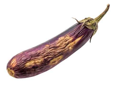 Spoiled eggplant on transparent background. Mould on spoiled vegetables. Rotten food. Isolated. transparent white  background, png.
