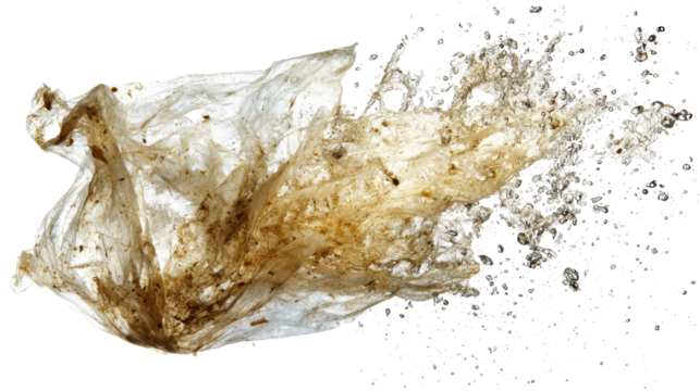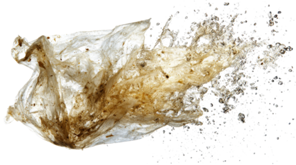 Plastic waste swirling in the air, highlighting pollution issues. transparent background