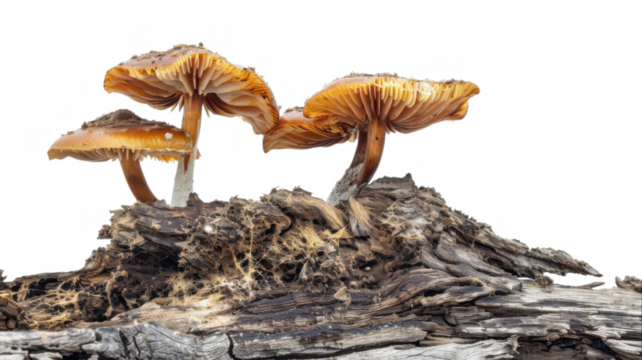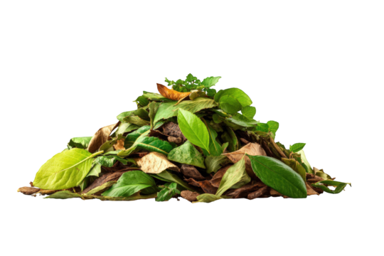 Scattered pile of dry soil with leaves and small rocks, isolated on transparent background
