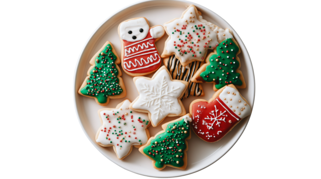 Assorted Christmas Sugar Cookies, isolated on transparent background